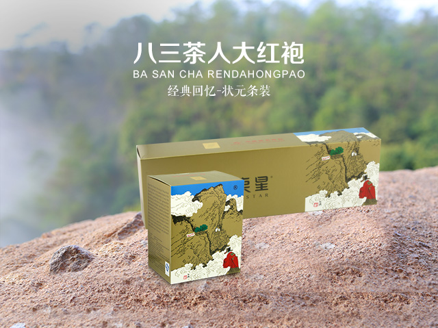 以“状元拜山图”为包装的八三茶人大红袍,是武夷山历史上的第一款商品大红袍,多年来深受广大新老茶客的喜爱,是大红袍的经典代表。